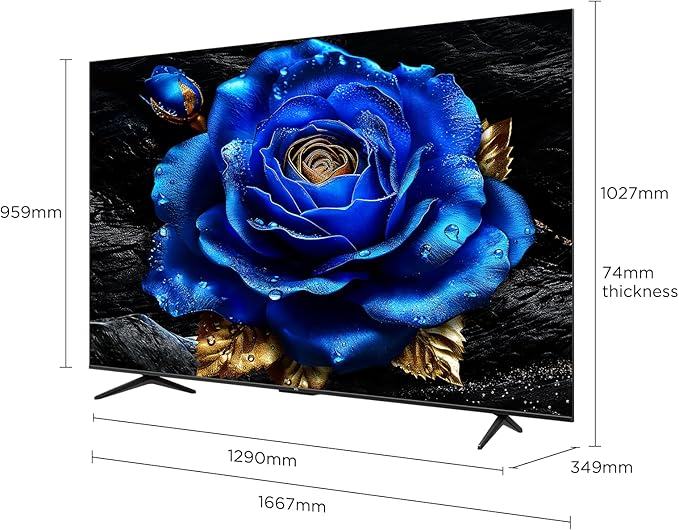 تلفزيون 75 بوصة نحيف 4K كيو ال اي دي وكوانتوم كريستال ونطاق HDR 10+، ميزات جيم ماستر ونظام تشغيل جوجل تي في ودولبي فيجن اتموس وعرض صوت افتراضي وتقنية ام اي ام سي وتحكم صوتي – 75P71K 2025 من تي سي ال